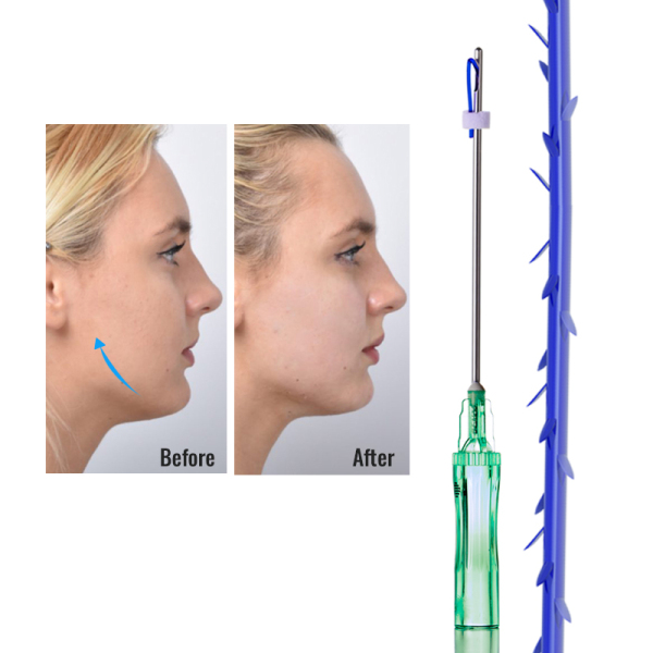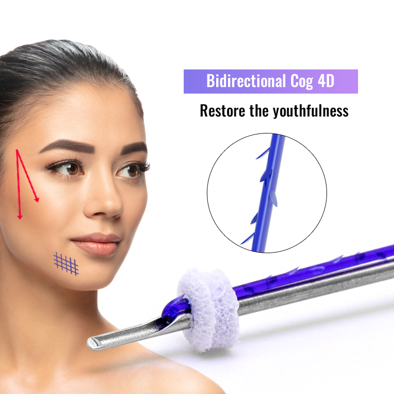 Thread is made of PDO (Polydioxanone), it is a thread with no cones, thus no damage to the tissue. This is the same thread used in Cardiac and other surgeries as sutures, and thus it is very safe. Threads are implanted into the sub-dermal skin and stimulate the production of collagen, the skin becomes firmer, elastic and moisturised. The thread dissolves itself in couple of months but the effect last for 18-24 months. The thread can be applied to anywhere on the body, such as a flabby face, cheeks, eyebrows, to prevent eye bags, sagging neck skin, fine lines, wrinkles and lifting of breast.